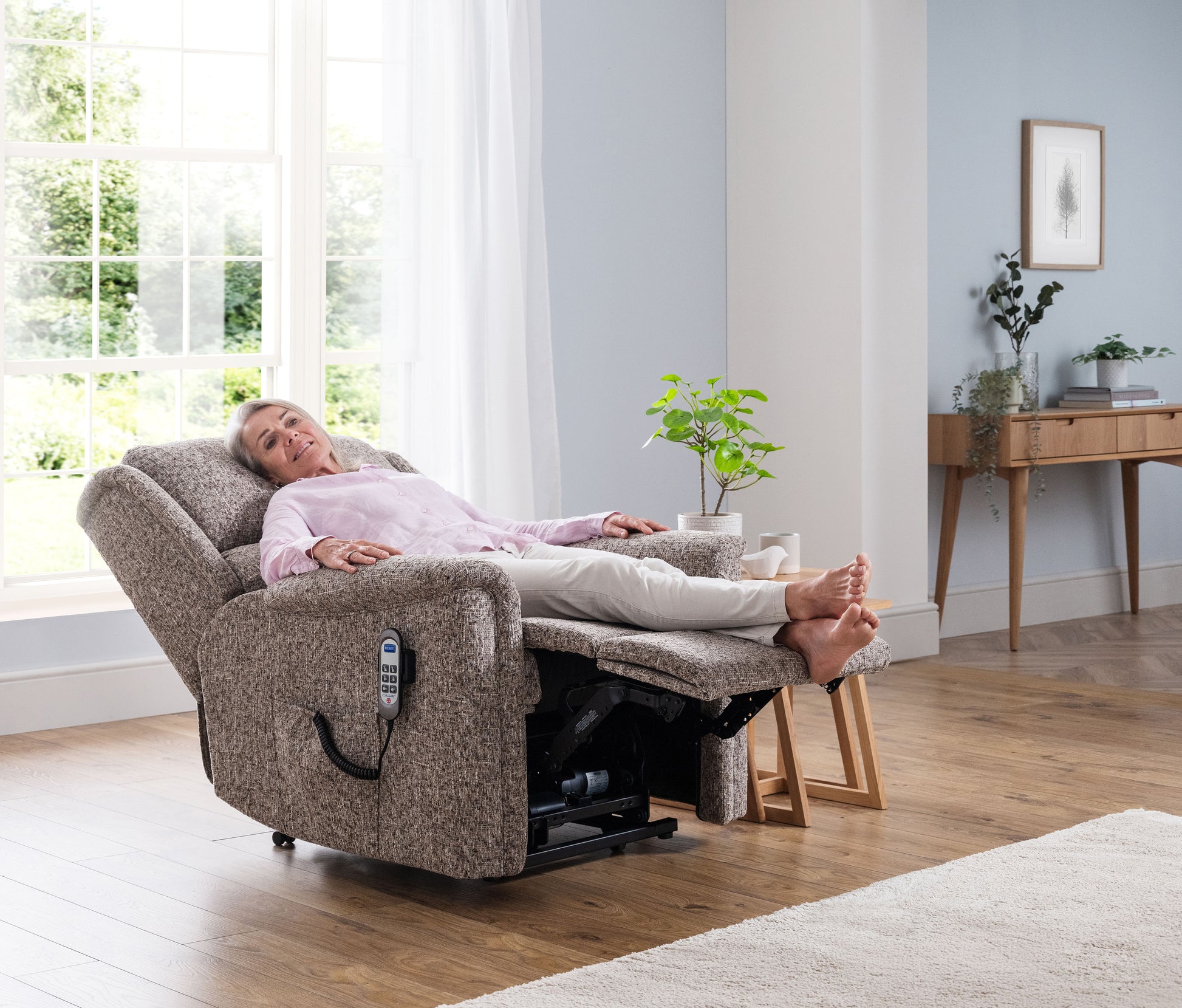 Relax, with the footrest extended, back upright, which is ideal for watching TV or reading a book.