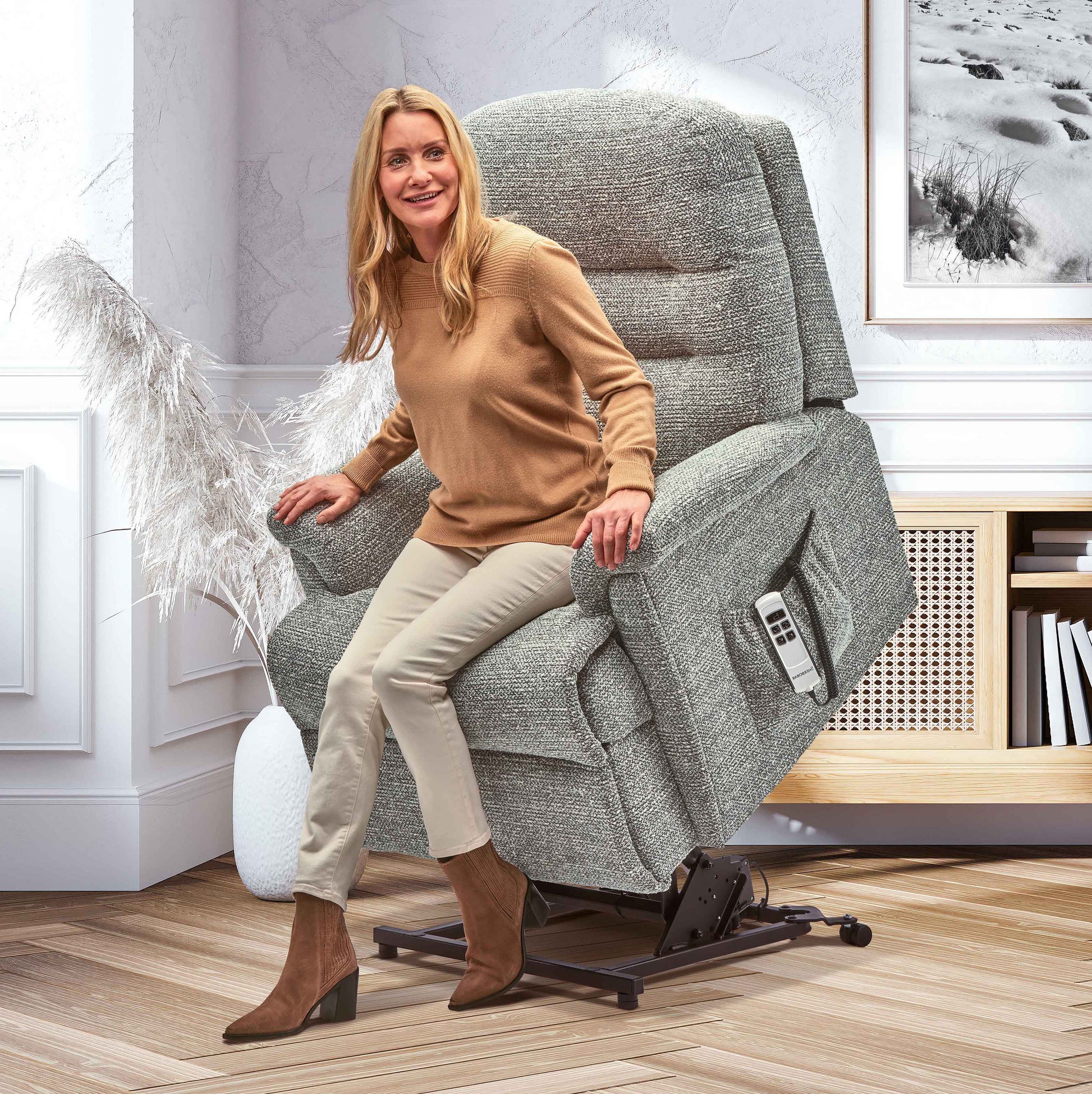 The intelligent handset will reset the tilt function before rising you up to a standing position, ensuring you are in a safe lift position at all times.